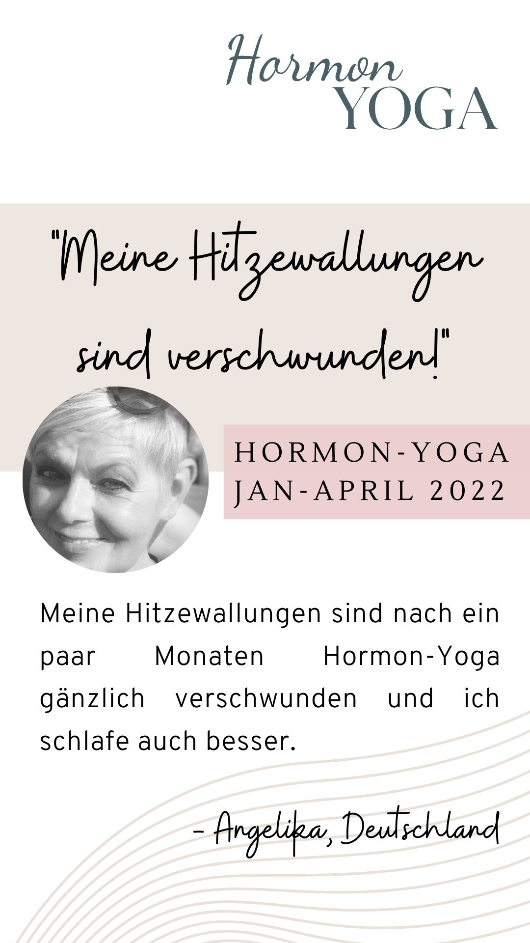Meine Hitzewallungen sind nach ein paar Monaten Hormon-Yoga gänzlich verschwunden und ich schlafe auch besser.