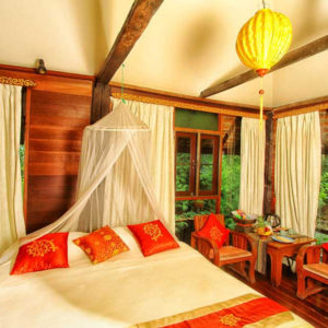 Lanna Spa Villas are traditional Thai Lanna houses on two floors. The ground floor area is open-air with both private sauna and steam room. There are also two treatment or day beds and a dining area. The upper floor has a large double bed, mini-bar, tea / coffee facilities, satellite TV, CD player, telephone, air-conditioning, and fan, as well as a large open-air bathroom with Jacuzzi for two and separate shower.