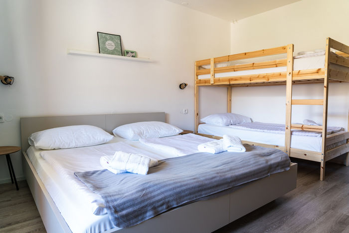 With a stunning view of Lake Bohinj. Bedroom and separate living room with a small kitchen are ideal for preparing an afternoon snack.