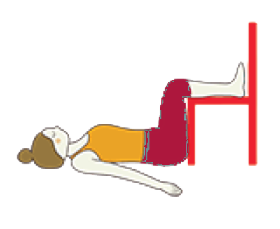 - Lie on your back with hips close to a chair and rest your calves on the chair.