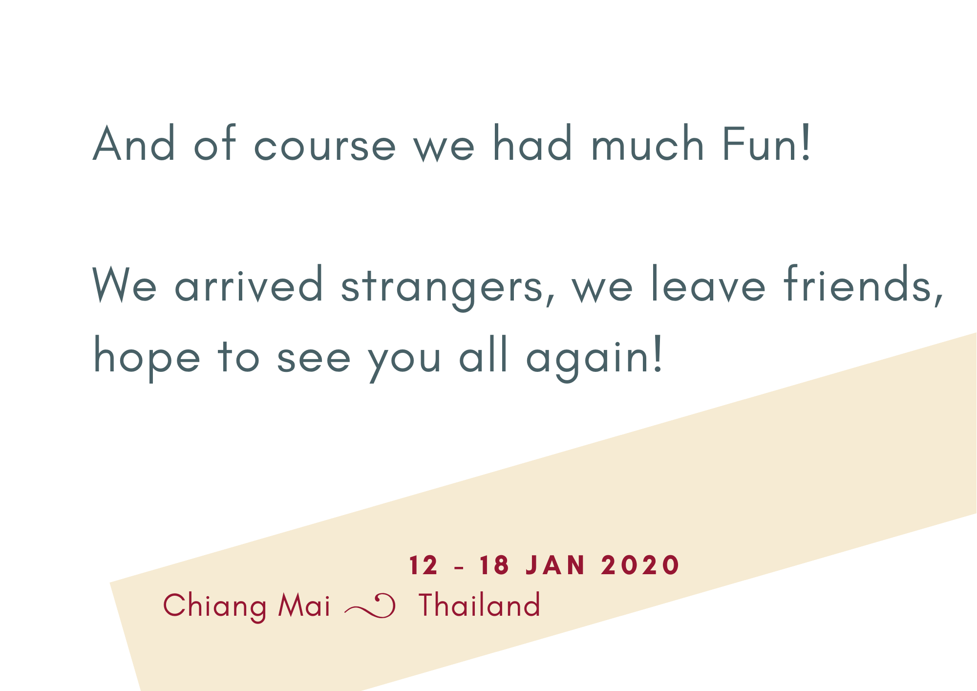 The retreat in Chiang Mai was an unforgettable week, physically and emotionally intense. Real moments of exchange and sharing around yoga and meditation. This retreat not only rejuvenated me but I felt regenerated as the days went by.