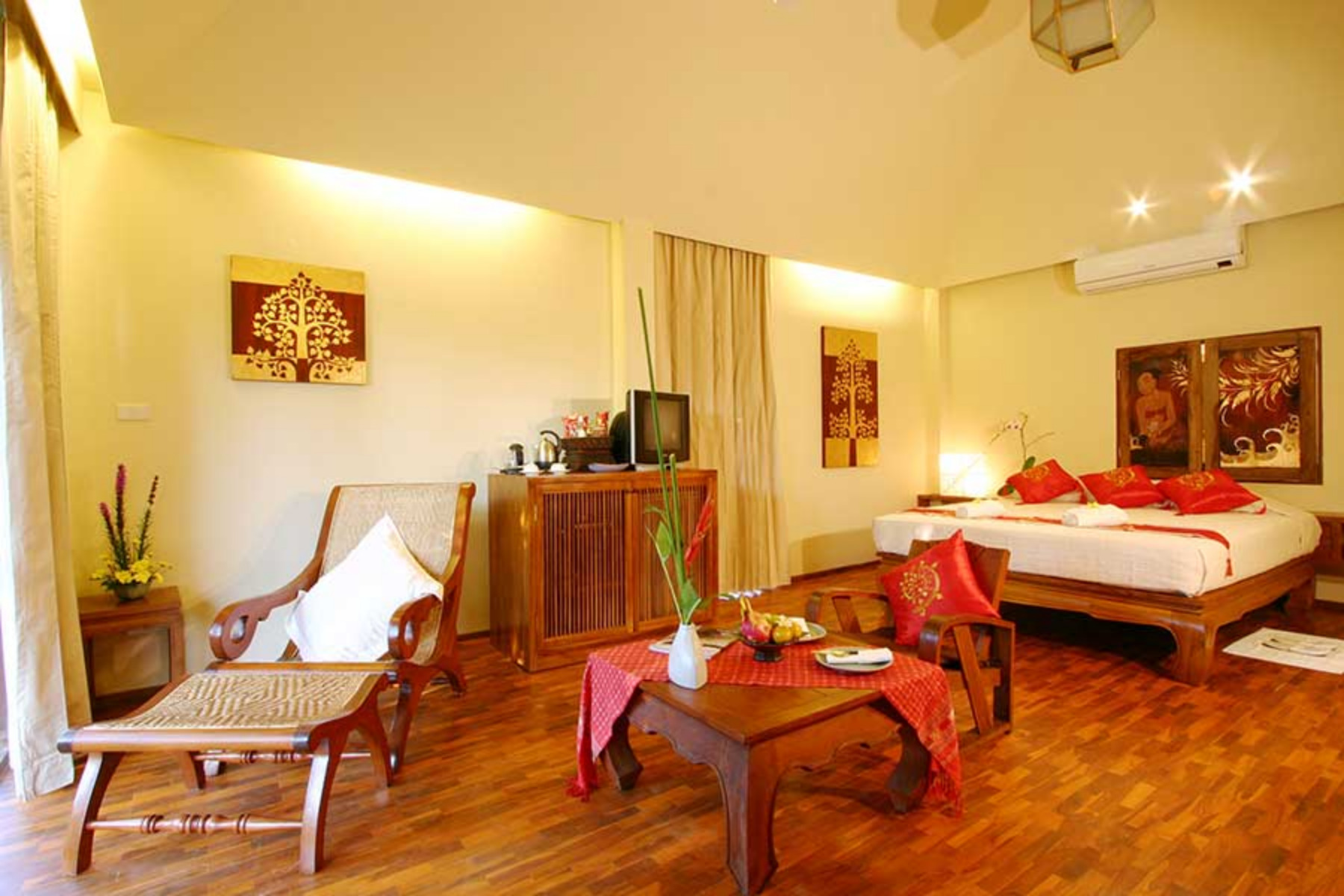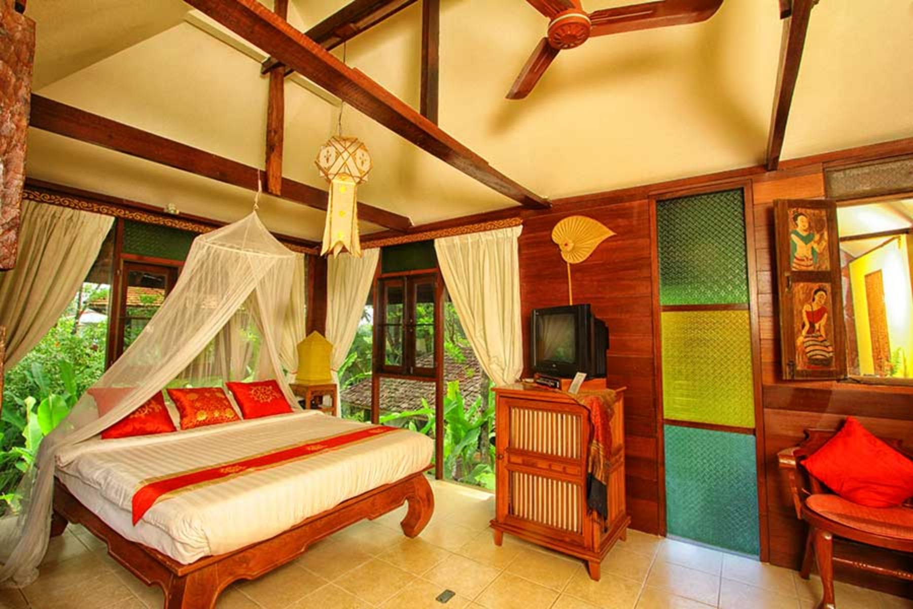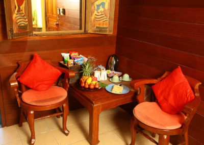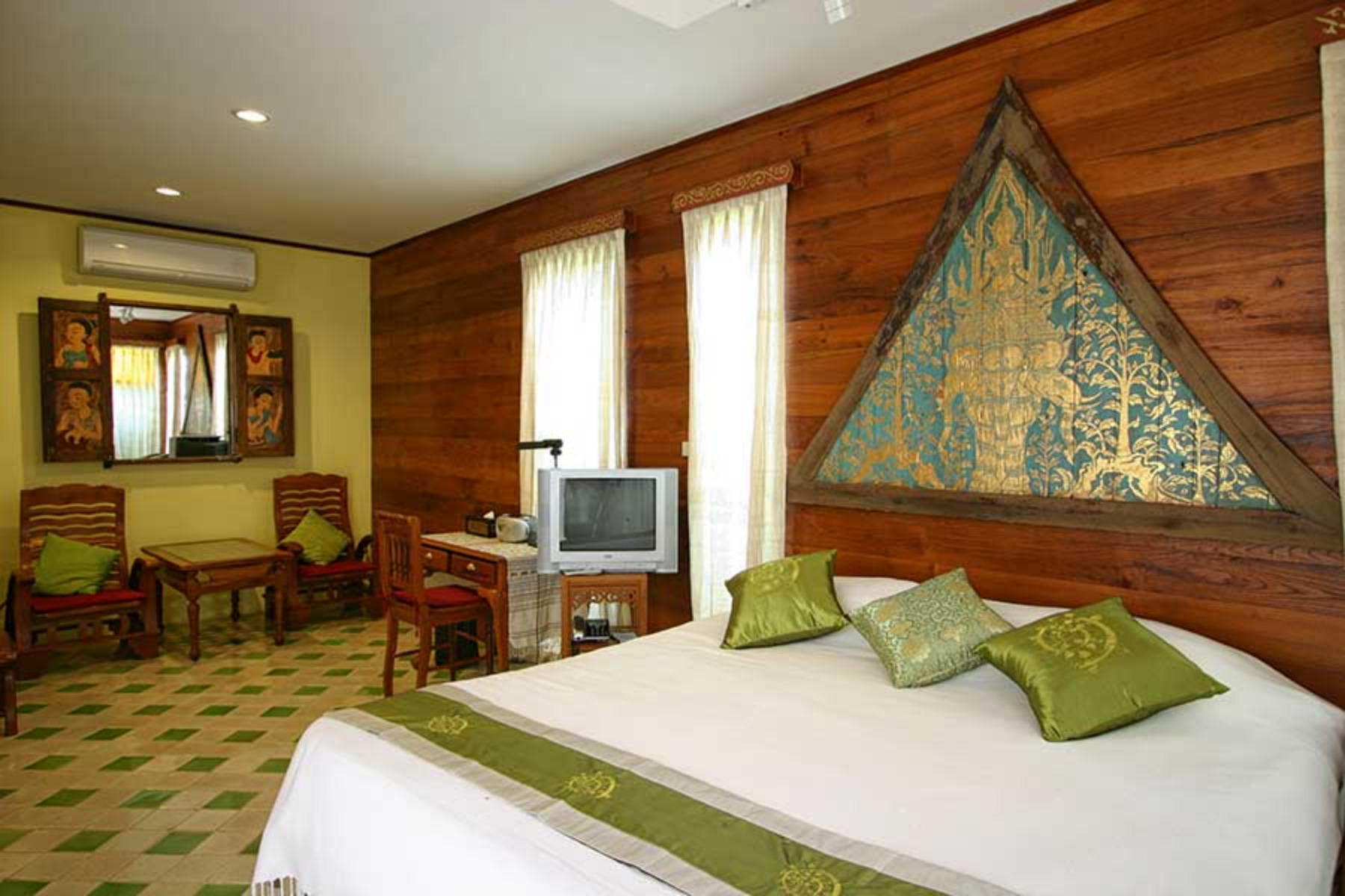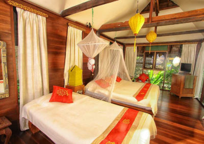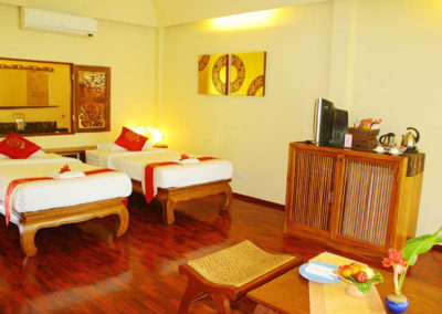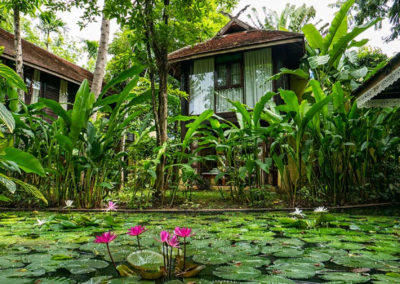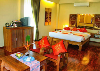 Lanna rooms offer comfortable accommodation, located in two of the traditional Lanna villas. They each have a large double bed, a mini-bar, complimentary tea / coffee facilities, CD player, telephone, satellite TV, air-conditioning and fan, and a bathroom with bathtub and separate shower. Lanna rooms are approximatively 30 square meters in size.